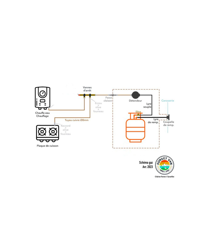 Le circuit gaz en van aménagé est primordial pour une autonomie complète. En revanche la présence de gaz a bord d'un véhicule nécessitera une homologation complète si les éléments ne sont pas amovibles. Une installation gaz doit respecter un certain nombre de normes AFNOR mais ne vous inquiétez pas, ce n'est pas si compliqué.